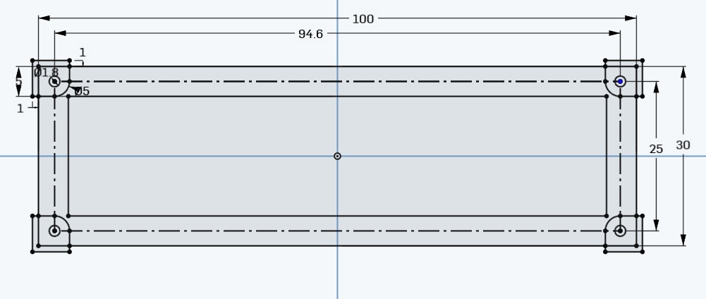 Hier geht es um die Befestigung des o.a. Shields. Es wurden 2×5 mm selbstschneidende Schrauben für Kunststoff verwendet. Für die konkrete Anwendung in einem 3D-gedruckten Gehäuse sind nur die vier Eckenkonstrukte erforderlich. Die Verbindungen dazwischen waren nur für die Tests nötig.
